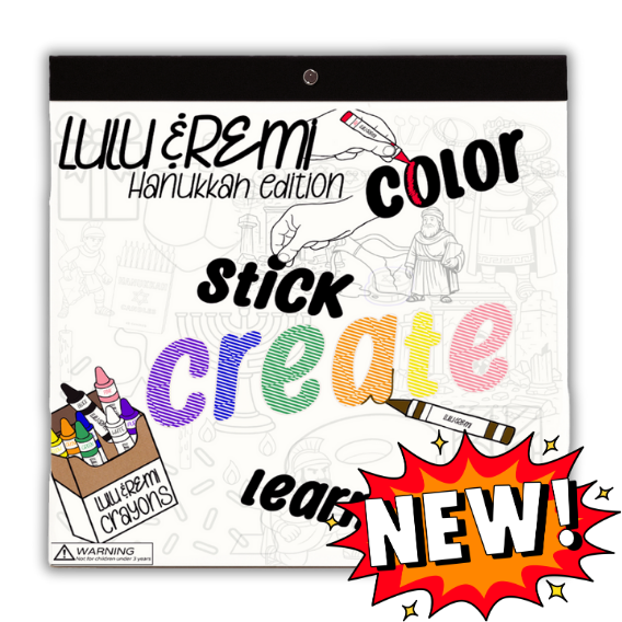 This special edition of the Lulu & Remi coloring sticker book is filled with festive illustrations and playful stickers that bring the traditions of Hanukkah to life. From lighting the menorah to spinning the dreidel and enjoying delicious latkes, kids will experience the joy of the holiday through hands-on activities that inspire imagination and fun.